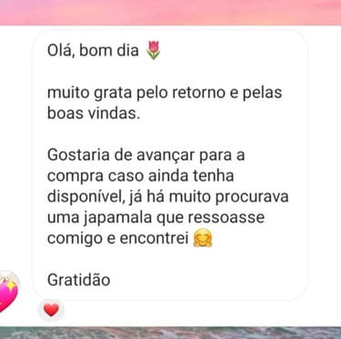 Bem-vinda a este espaço seguro, onde vais descobrir o teu próprio Japamala, totalmente personalizado! Aqui vais poder partilhar as tuas preferências, intenções e desejos para criar um Japamala único e com significado, que reflita a tua essência e o teu poder pessoal.